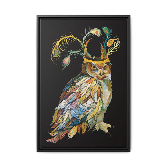 "Owl In A Peacock Crown" Framed Canvas Fine Art Reproduction by Zabrina Fine Art