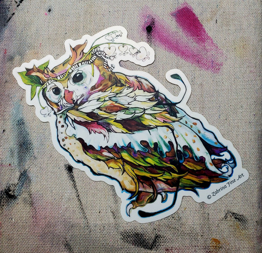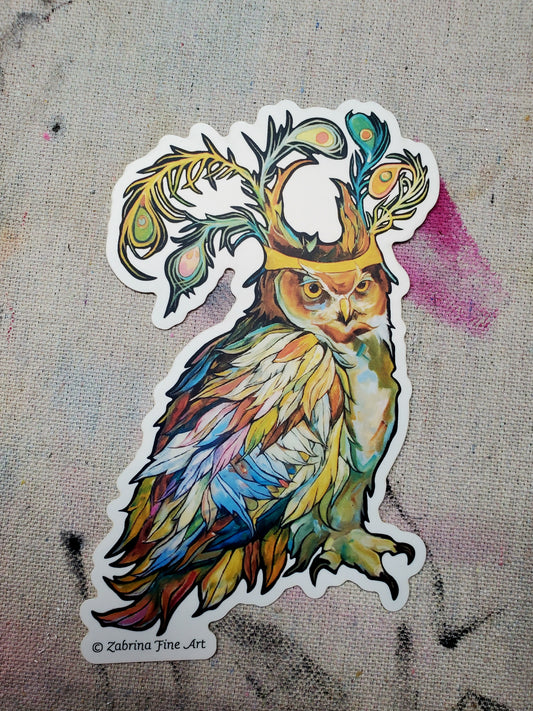 "Peacock Crown Owl ZSticker" Die-Cut Sticker