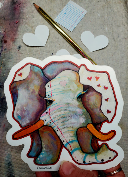 "Red Hearts Elephant ZSticker" Die-Cut Sticker