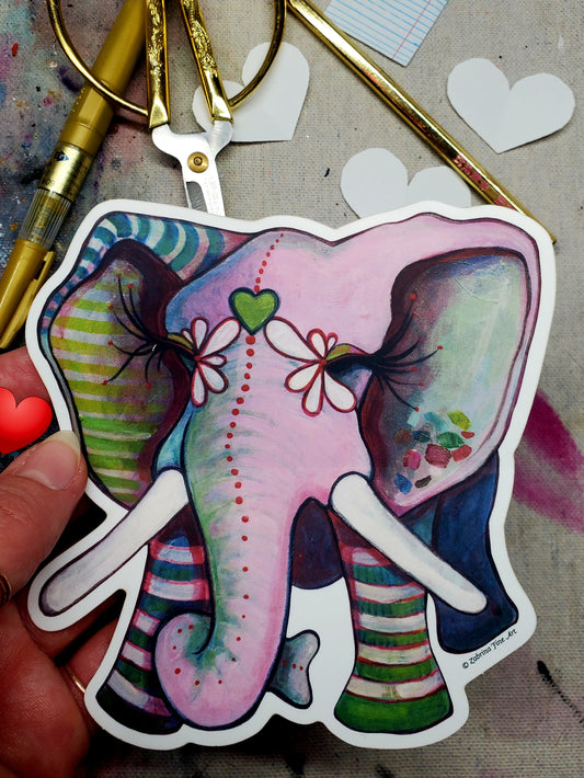 "Green Heart Elephant ZSticker" Die-Cut Sticker