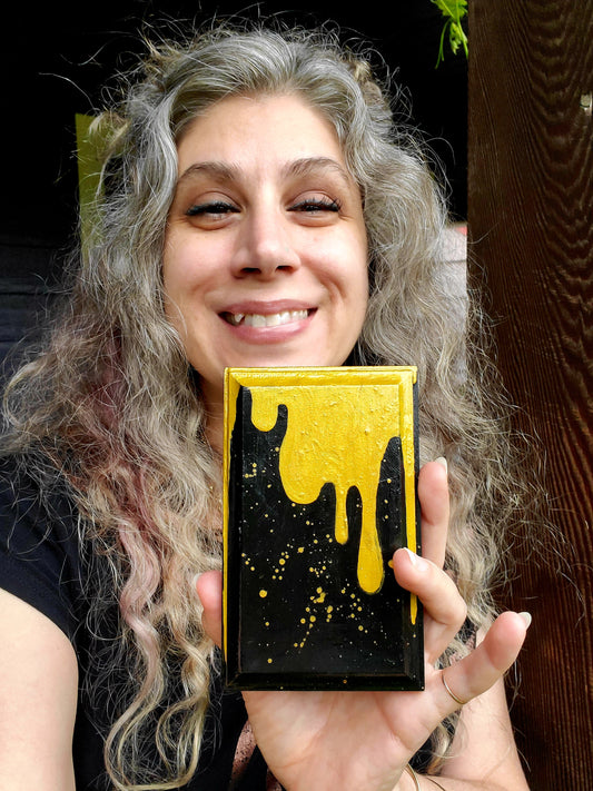 "Gold Dripping, Glossy Black" Original Painting by Zabrina Fine Art
