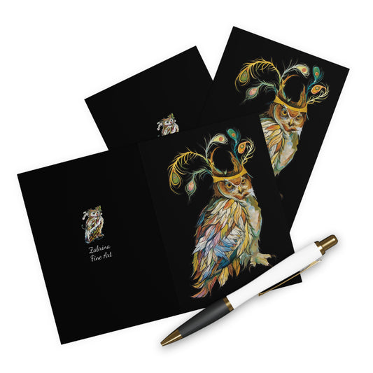"Peacock Crown Owl" Notecards by Zabrina Fine Art (set of 5)