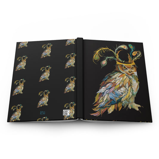 "Peacock Crown Owl" Hardcover Journal by Zabrina Fine Art