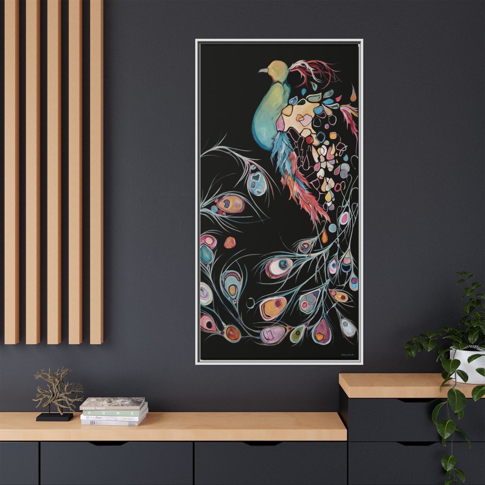 "Peacock" Framed Canvas Fine Art Reproduction by Zabrina Fine Art